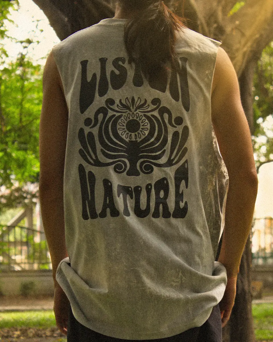 Men’s Listen Nature tank top in a vintage style with acid wash for a beautiful, dimensional fade. Easy to wear, yet striking. Made from 100% cotton jersey, it’s soft, airy, and breathable.