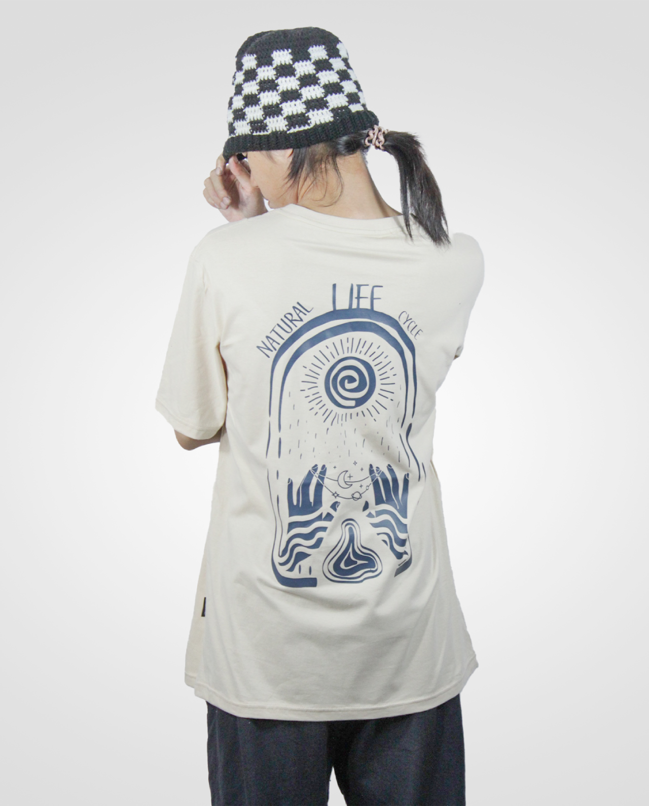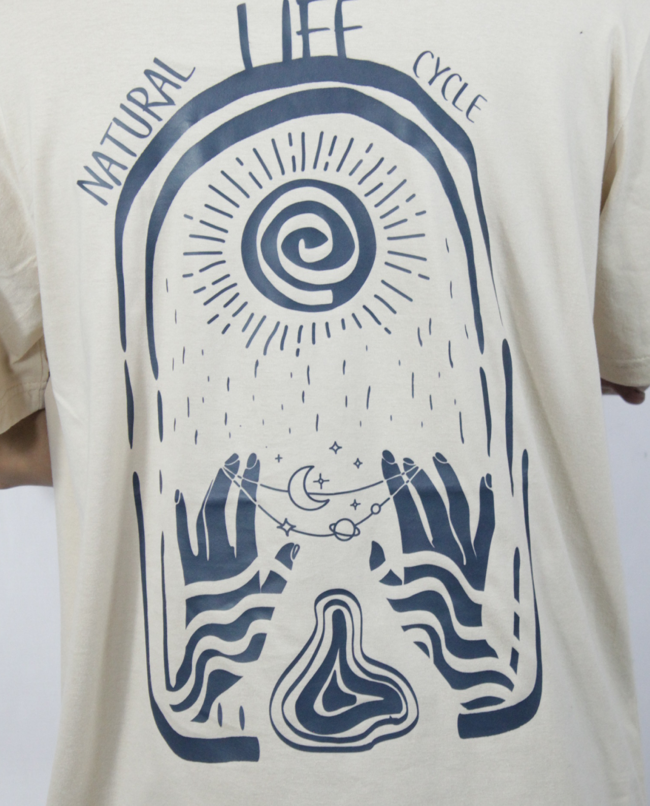 Oversized long-sleeved T-shirt in the Natural Life Cycle pattern, featuring a minimalist, natural vibe. It’s casual yet refined. Made from 100% cotton, it’s soft, airy, and breathable. The screen print features sharp colors and clear details.